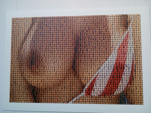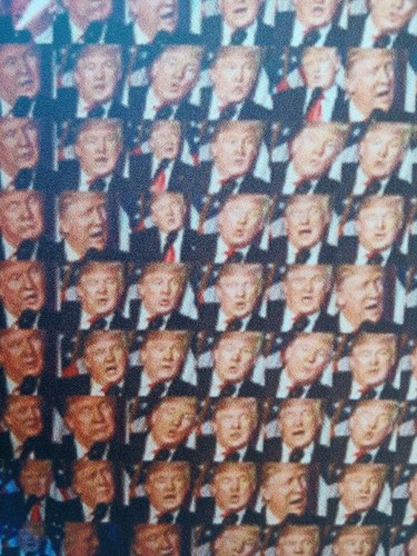 Por último, dois ex-libris. Uma foto de um par de mamas cuja receita (1200€) revertia para a Luta Contra o Cancro da Mama. Ao longe mamas. De perto, mini retratos de Trump em diversas expressões. E o segundo: quem não gostaria de ter na parede um anjinho papudo em tamanho real?