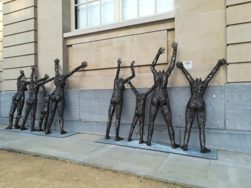 Boa noticia: estão na parte exterior do Museu e por isso, mesmo que de fiquem por passear nos jardins envolventes (aque acreditem por si só vale um passeio sobretudo em dias solarengos), podem ver as esculturas feitas por Freddy Timbsa, um congolês, emprestou ao Museu. A instalação chama-se "Centro fechado, sonhos abertos", é em tamanho real e é totalmente feita com... colheres!