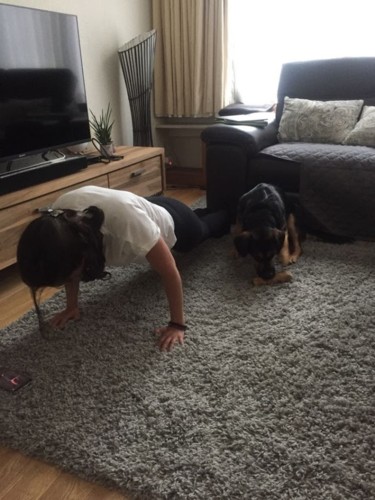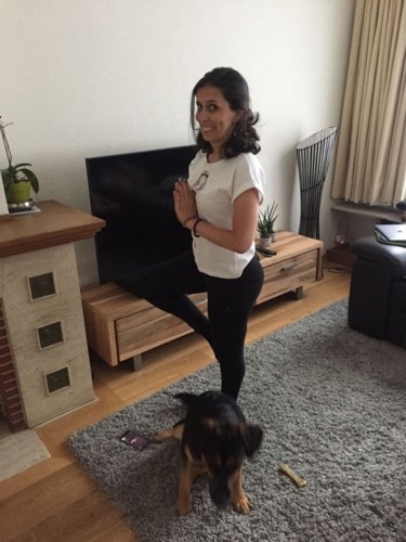Para ajudar à festa, o Nano, o meu ser canídeo que deambula lá por casa todas as manhãs a fazer posições de yoga (claramente tem um mestre Yoga dentro de si) resolve sempre juntar-se à festa e activamente participar na actividade. Umas vezes colocando o seu corpinho de 25kgs em cima de mim e forçar-me a testar ainda a minha parca flexibilidade; outras vezes por se deitar em cima dos meus pés/ pernas e testar os limites do meu equilíbrio; ou deitando-se em cima dos meus braços para garantir que o músculo do adeus trabalha como deve ser. Obviamente que torna todo o processo ainda mais desafiante (e nem sempre mais motivador).